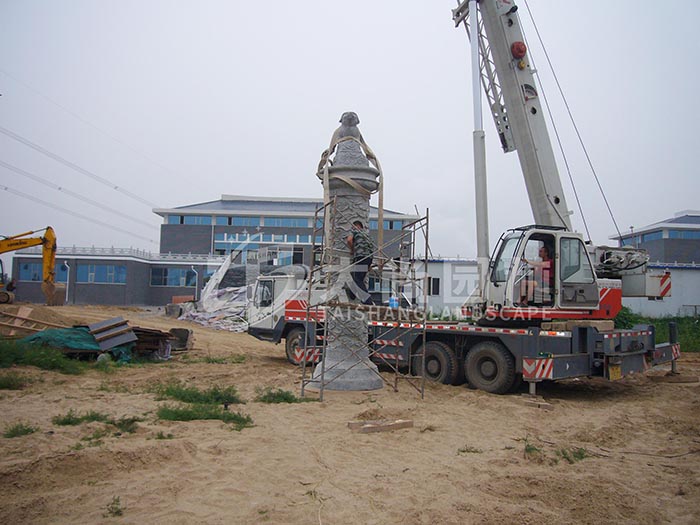 十二生肖雕塑采用云彩雕刻的柱子形式展現(xiàn)十二生肖的神話故事,整體表現(xiàn)的栩栩如生。